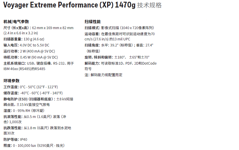霍尼韋爾1470G二維碼掃描槍特性